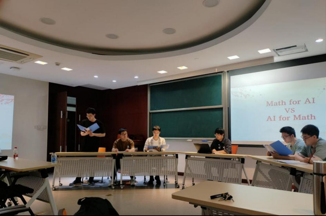 支部成员结合一系列前期学习成果,分为两组开展调研活动。一组以AI在数学科研中的优势与实际成果为题,分专业方向进行调查研究,综合分析当前现实可行的结合路径。另一组以AI在数学科研中的不足与失败案例为题,通过调查研究提炼归纳AI所具有的理论缺陷,从中找到数学可从哪些方面为AI的进一步发展“添砖加瓦”。后续两方面的调研将合并形成一份调研报告。两者本质上是同一个话题的两个方面,根本上旨在为支部成员厘清未来数学科研与AI结合的发展方向与创新模式。