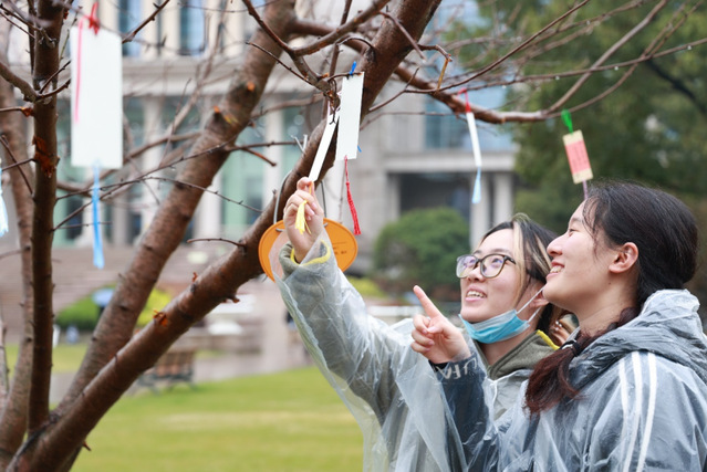 在细雨中握着铁锹培土,为两棵新栽的桃李树埋好根系,写下对未来的美好祝愿挂上枝头,我们似乎也对温暖春日的临近更加期待。桃蹊李径承师道,此刻埋下的不仅是树苗,更是对母校百廿新章的祝福——愿复旦学子如佳木拔节,母校荣光似桃李芬芳。