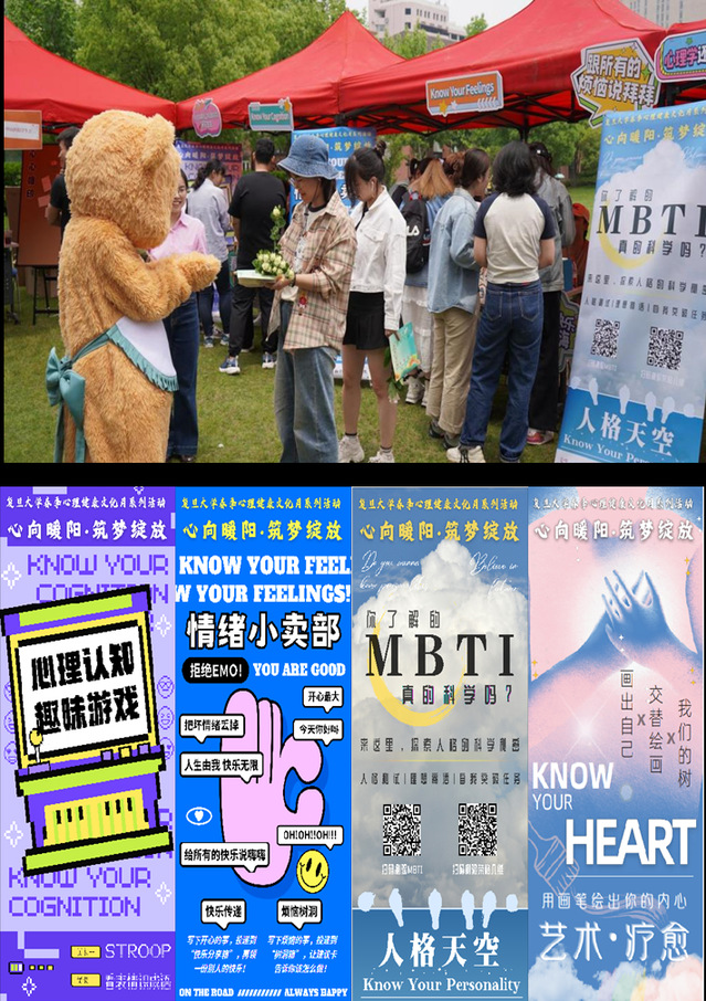党支部结合心理学专业特点,精心策划了觅心知己Know Thyself心理健康主题活动,并积极申报2024年复旦大学春季学期心理健康文化月系列活动。在复旦大学党委学生工作部(处)心理健康教育中心和社会发展与公共政策学院党委的指导支持下,联合社政研会文体部被中心列为2024年复旦大学春季学期心理健康文化月线下展示活动承办方,获得中心专项支持。