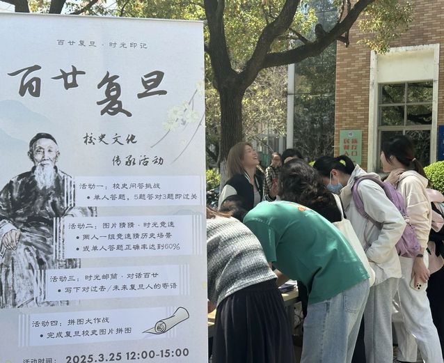3月25日下午,“百廿复旦·时光印记”摊位互动活动,在南区食堂门口拉开了帷幕