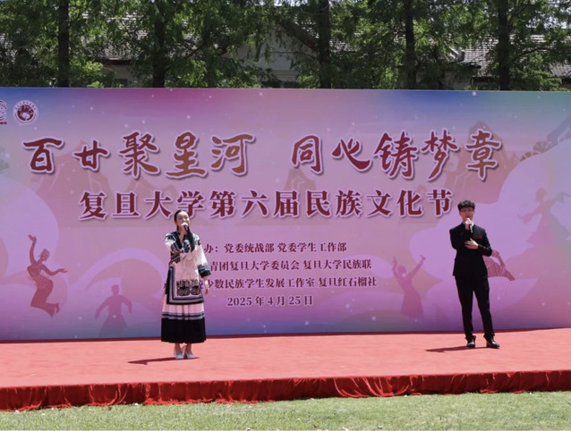 4月25日中午,由校党委统战部、党委学生工作部主办,共青团复旦大学委员会、复旦大学民族联协办,校少数民族学生发展工作室与复旦红石榴社承办的“百廿聚星河 同心铸梦章”——复旦大学第六届民族文化节在邯郸校区光华楼东辅楼草坪圆满举行。