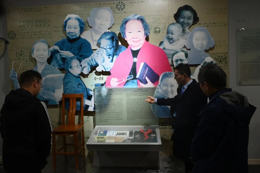 随后,众人前往福寿园人文纪念馆。馆中展出了包含谢希德先生在内的12位先贤的生平纪要和重要物件。谢希德先生各个时期的照片使得她的一生对于我们变得更加可感而可亲——她的眉目总是那般温和带笑;丈夫为她定制的椅子在让我们深感其抗争病魔之艰难的同时也感念二人的动人情谊。