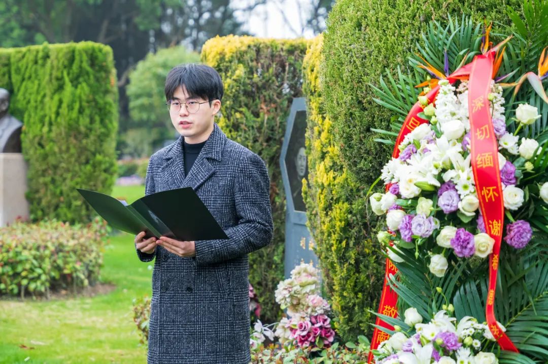 众人肃穆,祭扫仪式正式开始。主持人唐戬简要讲述了谢希德先生的生平,字句间透出感怀之思,同时也给人以鼓舞之意。