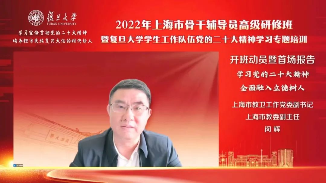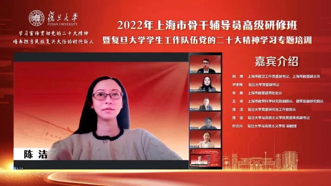 为学习宣传贯彻党的二十大精神,进一步提高上海市高校辅导员的思想政治素质、专业素质和创新能力,增强大学生思想政治教育工作的针对性和实效性,在上海市教卫工作党委、上海市教委的指导下,上海市学生德育发展中心、教育部高校思想政治工作队伍培训研修中心(复旦大学)、上海高校辅导员培训研修基地(复旦大学)、复旦大学党委学生工作部组织举办了2022年上海市骨干辅导员高级研修班暨复旦大学学工队伍党的二十大精神学习系列专题培训。
