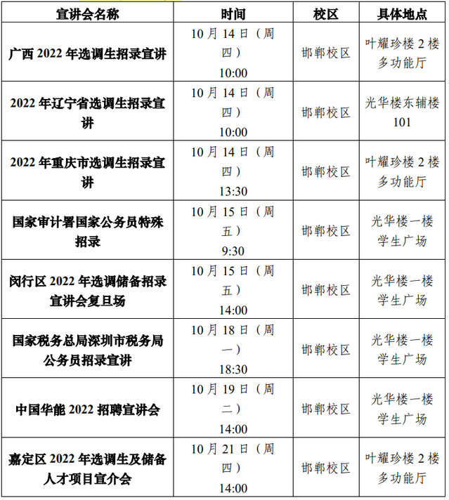 学生可通过就业信息网(career.fudan.edu.cn)(求职信息-宣讲会)获取招录宣讲信息。