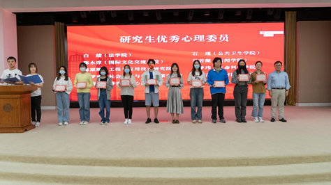签约授牌仪式后,举行了2020-2021年度优秀心理委员颁奖,心理委员心理知识网络竞赛颁奖。颁奖结束后,来自管理学院的李方晴和公共卫生管理学院的石瑾同学作为优秀心理委员代表,介绍心理委员的经验与体会。来自社会发展与公共政策学院的党委副书记刘明波作为心理知识网络竞赛优秀组织奖获得单位介绍了院系心理健康教育的工作特色。