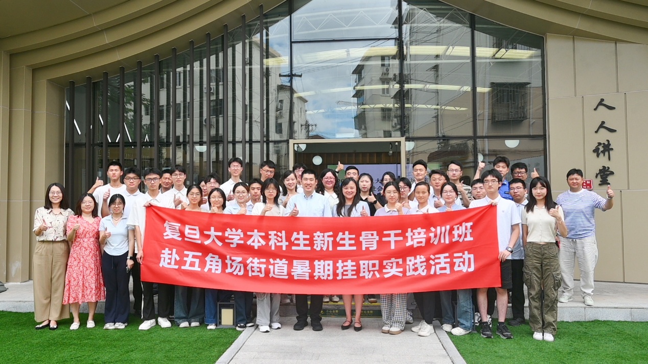 7月7日上午9时,复旦大学-五角场街道2025年新生骨干培训班大学生暑期挂职实践见面会在五角场街道国定支路睦邻街区人人讲堂顺利开展,新骨八期学员赴五角场街道暑期挂职实践活动正式启动。