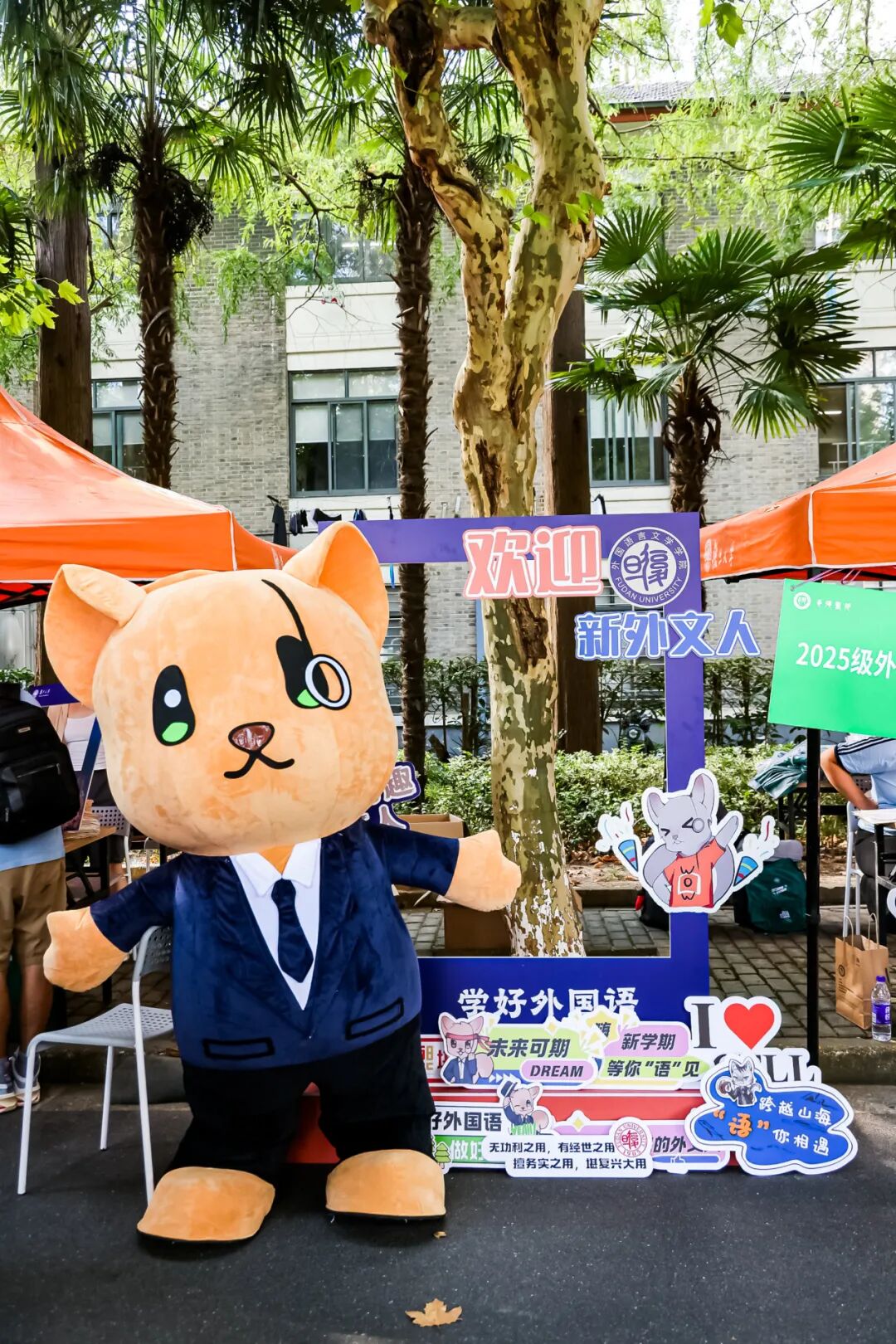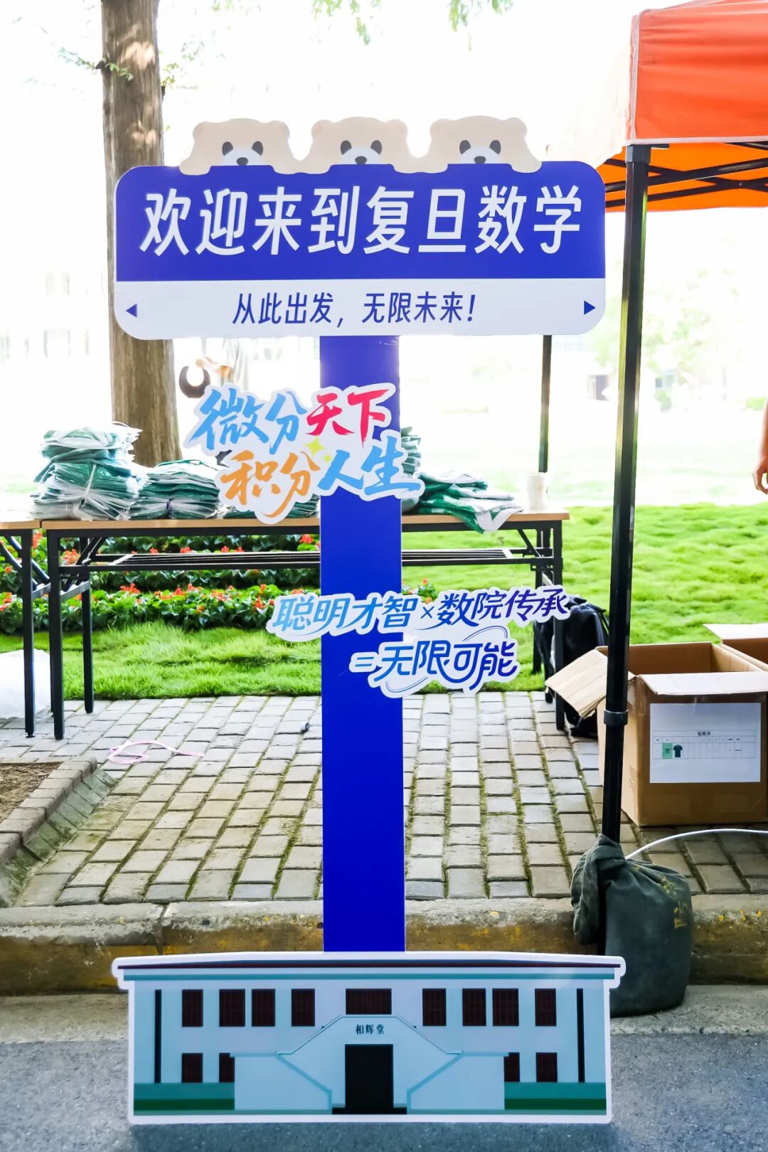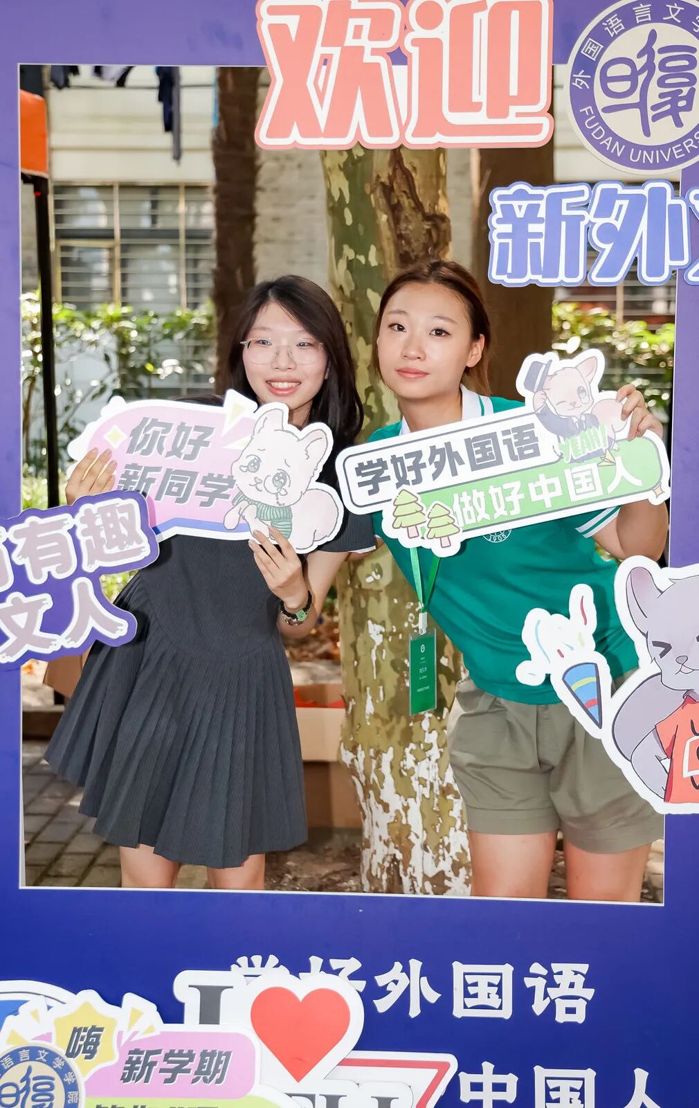 缀满其间的 “欢迎加入复旦大学” 三角旗