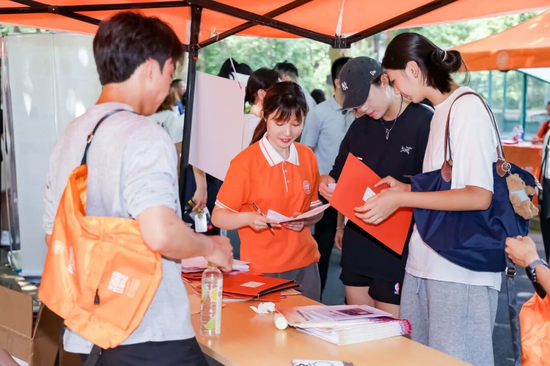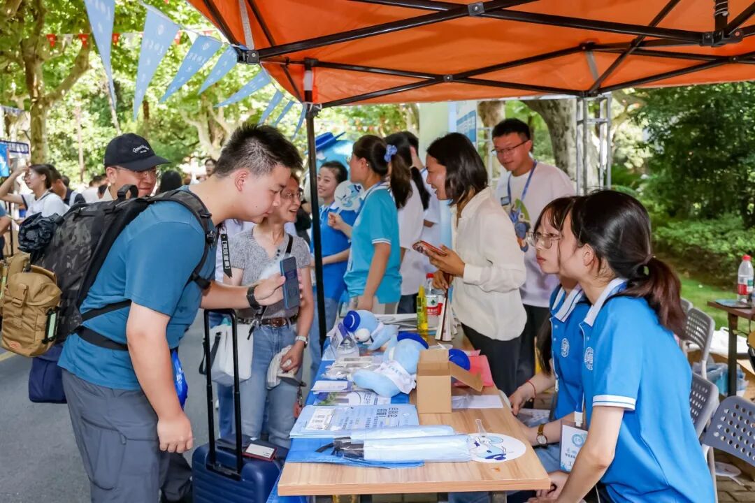 学生骨干和志愿者们提前发放迎新物资,布置报到场地、整理迎新资料,每个环节都力求周全,确保服务精准到位。
