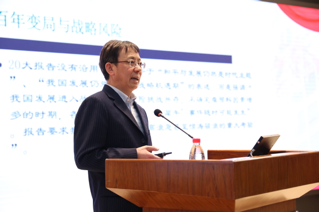 吴心伯从解读党的二十大报告出发,介绍了当前国际形势和未来十年的变局与战略风险,分析了当前国际政治经济格局正在发生的变化。