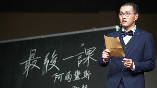 “今天,现在,日军已经进入租界,今天,也许就是我们在复旦的最后一课,各位同学,从速回家,切勿在路上逗留——下课。”这是《巍巍学府》中李登辉在舞台上留下的最后一句。如何服务社会?什么又是真正的爱国?老校长的字里行间都以鲜活的故事传达着他们的理念,教育当时的学生,也教育在场的观众需潜心问学、不忘初心,方可“报家报国,造福身边人”。