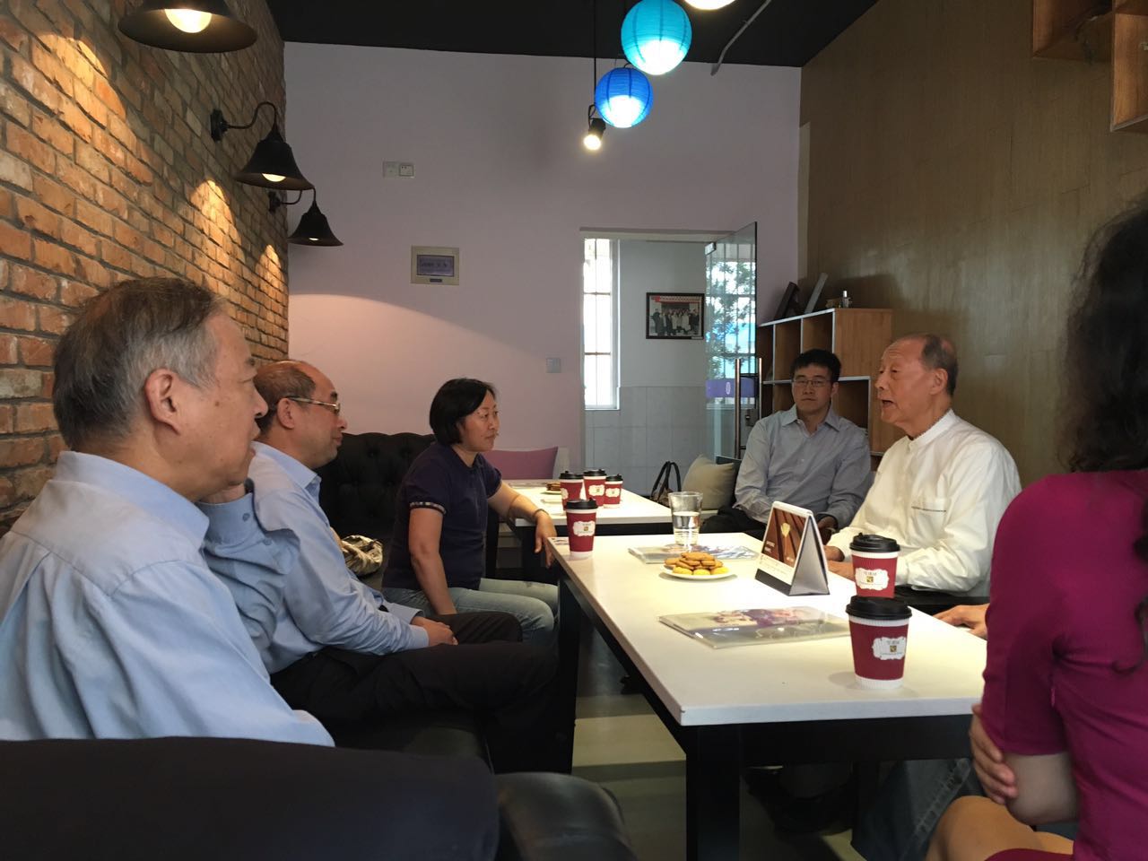 在增寿楼愉快交流后,王绍堉校董一行来到南区一期,参观了现有的希德书院公共空间。在此期间,复旦大学副校长张志勇教授在希拾咖啡吧与王校董亲切交流。