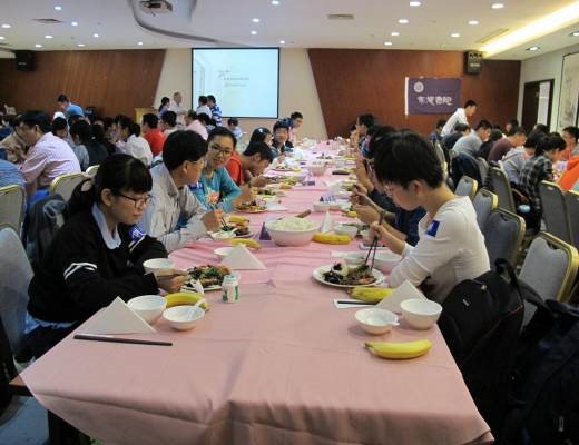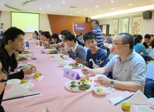 随后,在共膳过程中,来自希德书院八大院系的三十余名老师和辅导员与同学们聚坐在一起,一边面对面愉快地用餐,一边积极地交流。新同学们提出了各种各样的问题,比如大一应该注重培养什么,读哪些书比较好,今后科研研究的方向,如何有选择地参加各种活动,平时学习上又该注意什么等等,导师们都耐心细致地为同学做了解答。
