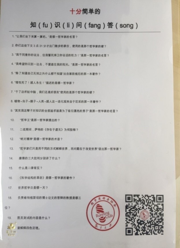 题目都十分简单,难不倒同学们。但其中某些哲学问题还是让大家有些纠结。