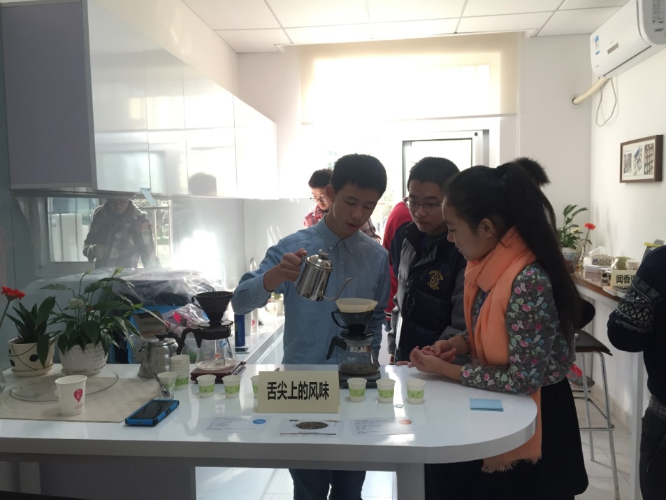 工作人员为同学们讲解制作一杯精品咖啡的整个过程,每一步都非常详细,能让同学们在玩的过程当中学到制作咖啡的知识。同时,同学们也可以自己亲自体验一下制作咖啡的整个过程,动脑又动手,制作一杯属于自己的香醇咖啡。