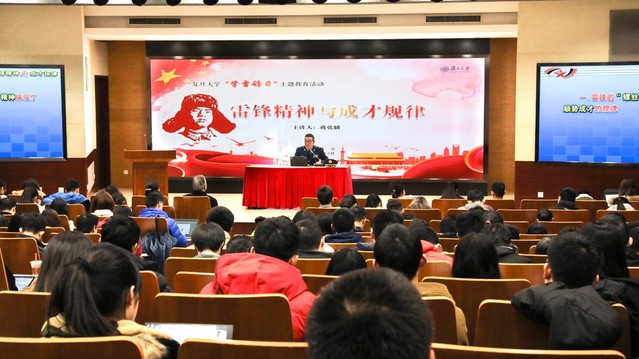 3月5日下午,复旦大学“学雷锋日”主题报告会在复旦大学光华楼东辅楼102报告厅举行。原解放军南京政治学院院长、教授、博导、空军少将蒋乾麟先生为在场师生作题为“雷锋精神与成才规律”的主题报告,场内座无虚席。本场主题报告由复旦大学党委副书记尹冬梅老师主持。