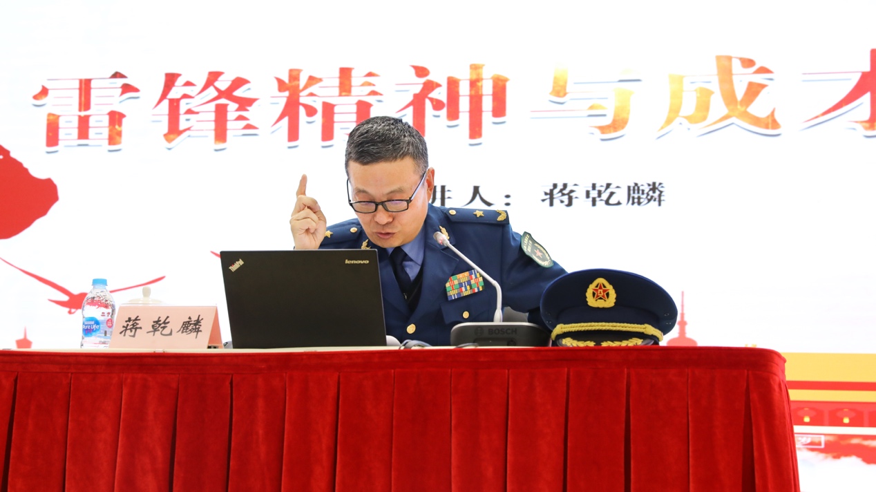 讲座伊始,蒋乾麟首先简明扼要地概述了雷锋精神和成才规律的内在构成要素。雷锋精神由“螺丝钉”精神、“钉子”精神和“傻子”精神组成,而成才规律则包括“顺势成才”、“压力成才”和“忘我成才”。