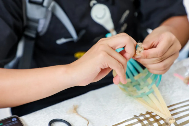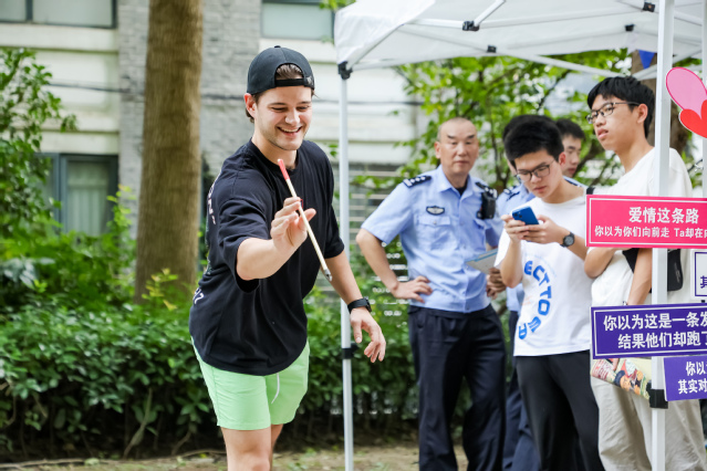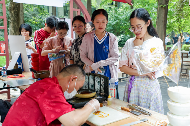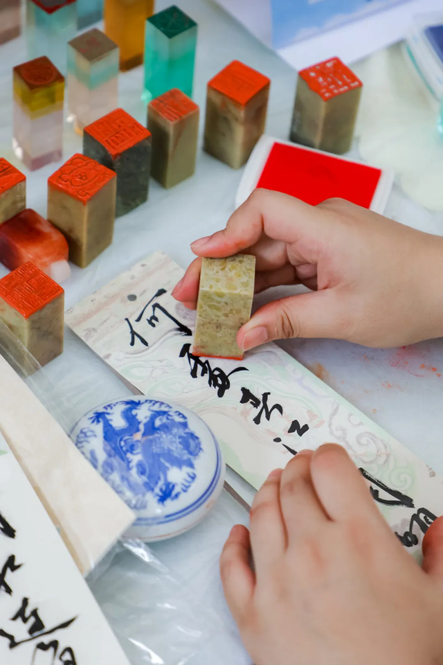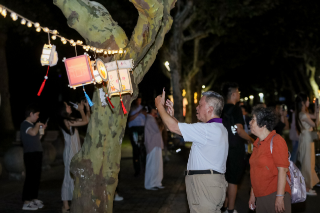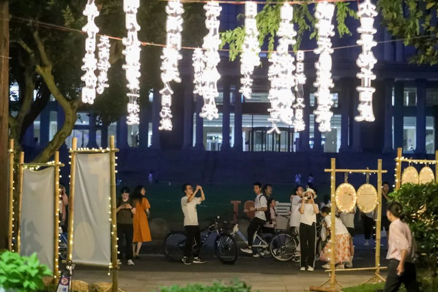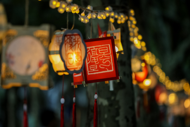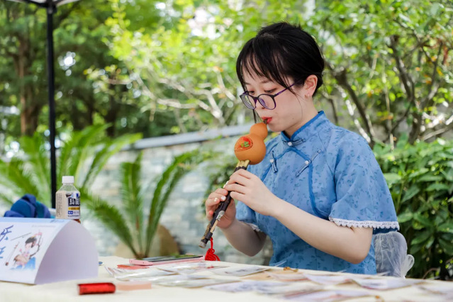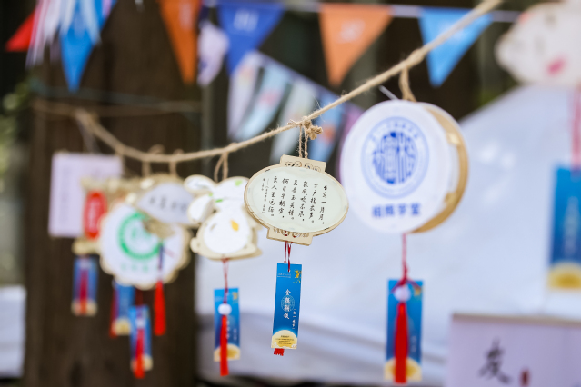 在游园会打卡了漆扇、香囊、花灯等摊位