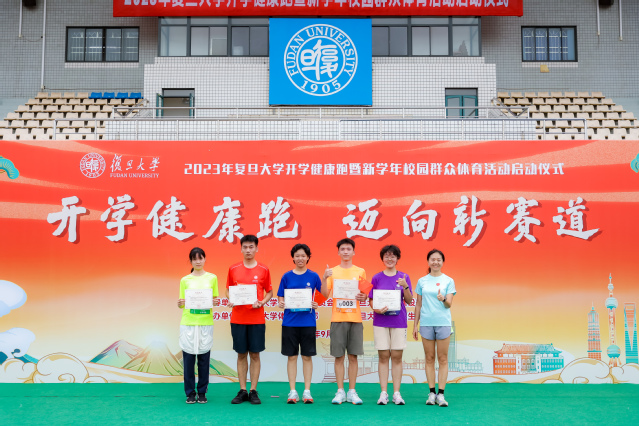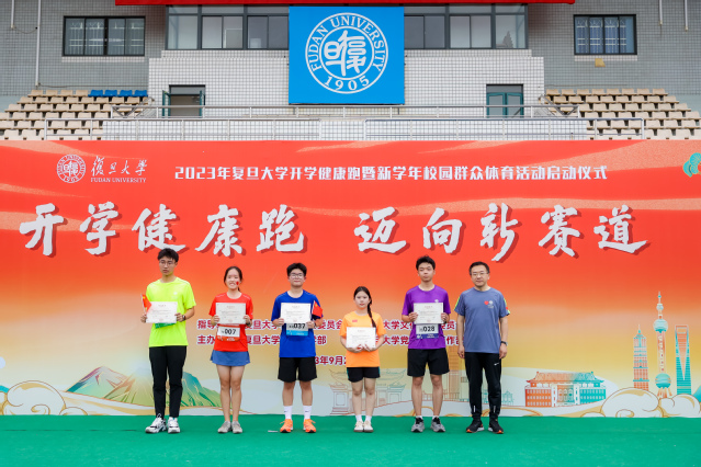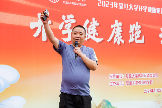 国歌奏响,国旗飘扬,我们用昂扬青春迎接祖国的生日。校党委书记裘新现场宣布2023年复旦大学开学健康跑暨新学年校园群众体育活动正式启动。校长金力为健康跑发令。
