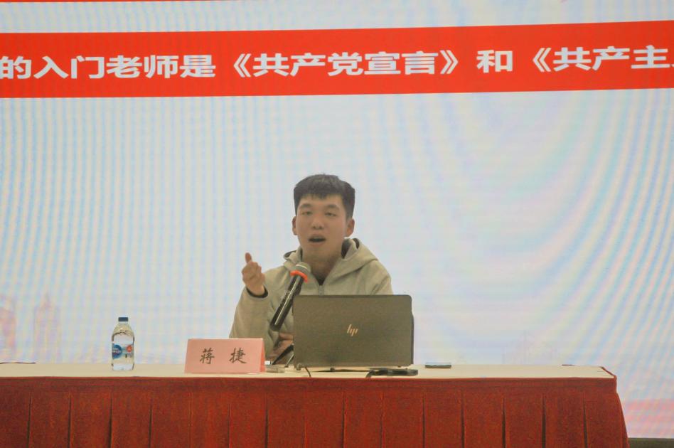 马克思主义学院2019级博士生蒋捷从《共产党宣言》着手介绍了马克思主义中国化的实践历程。自马克思主义传入以来,中国的革命、建设与改革都与《共产党宣言》有着不可分割的联系。“学习《共产党宣言》,除了要学习它的科学原理与科学精神,更重要的是要坚定对共产主义的信仰。”