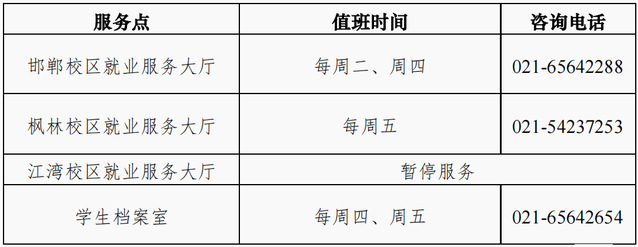 1月16日至2月14 日(除1月21日-1月27日春节放假时间),就业服务大厅调整业务办理时间如下,2月15日起各服务点恢复正常上班(邯郸校区就业服务大厅2月13日起恢复正常上班)。