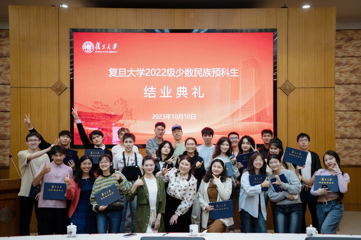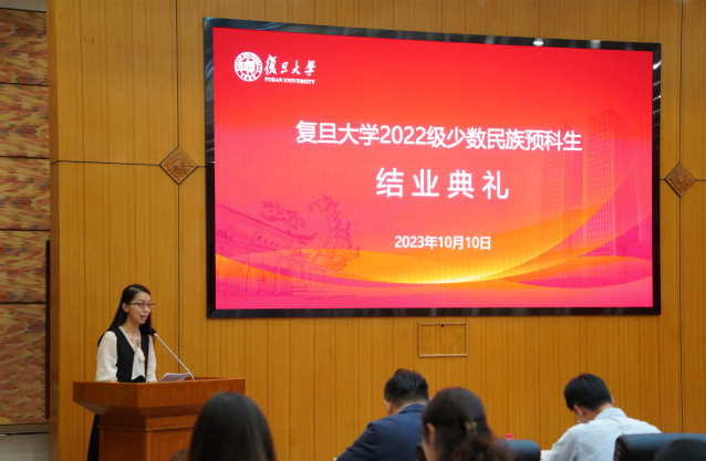 10月10日下午,复旦大学2022级少数民族预科生结业典礼在逸夫科技楼二楼报告厅举行。统战部、学生工作部、教务处、招生办负责同志和参与本届预科生培养工作的社会发展与公共政策学院、基础医学院教师代表、辅导员代表、任课教师代表及2022级少数民族预科班全体学生参加了典礼。