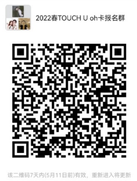 由糖心旦朋辈心理互助平台举办的Touch U“OH 卡”自我探索小组将于5月9日(周一)-23日(周一)连续开启多场,活动借助心理投射类卡牌在团体中探索个人潜意识,在主题对话中聆听朋辈智慧、拓展应对视角。活动有9大主题可选:家庭、恋爱、价值观、生命、人际边界、优势品格、情绪管理、与愤怒共舞、对话内在批评。请院系通知感兴趣的同学扫码入群,群内将发布具体场次通知进行报名。联系人:周子涵 18321428006。