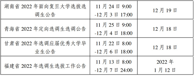 (2)选调生招录信息:各地区招录公告可关注就业信息网(公告新闻-公示公告)或“复旦基层就业”公众号,请动员有意向的同学踊跃报名并注意截止时间。