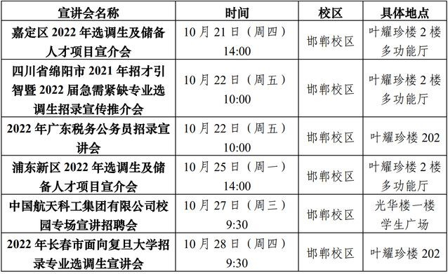 学生可通过就业信息网(career.fudan.edu.cn)(求职信息-宣讲会) 获取招录宣讲信息。