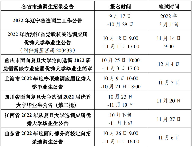 1.选调生招录信息:各地区招录公告可关注就业信息网(公告新闻-公示公告)或“复旦基层就业”公众号,请动员有意向的同学踊跃报名并注意截止时间。联系人:潘一凡 55665478。