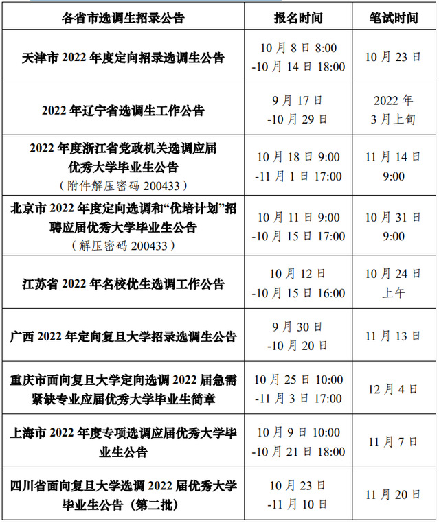 (1)选调生招录信息:各地区招录公告可关注就业信息网(公告新闻-公示公告)或“复旦基层就业”公众号,请动员有意向的同学踊跃报名并注意截止时间。联系人:潘一凡 55665478。