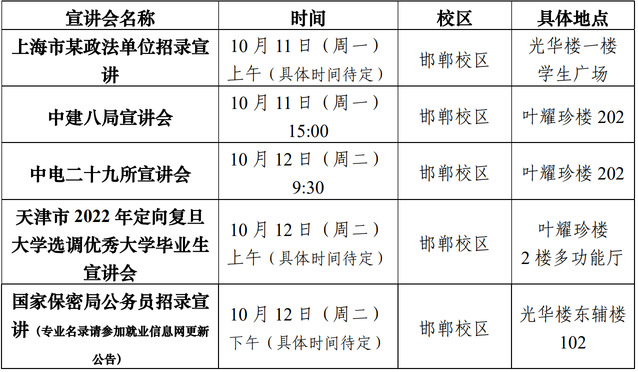 学生可通过就业信息网(career.fudan.edu.cn)-求职信息-宣讲会获取 招录宣讲信息。