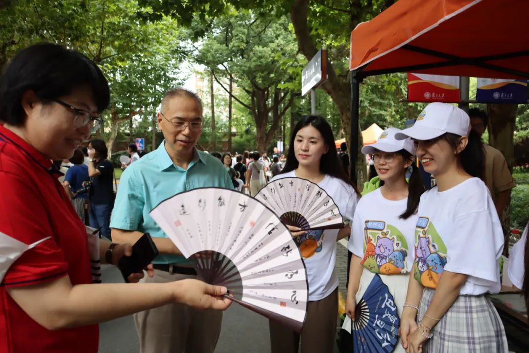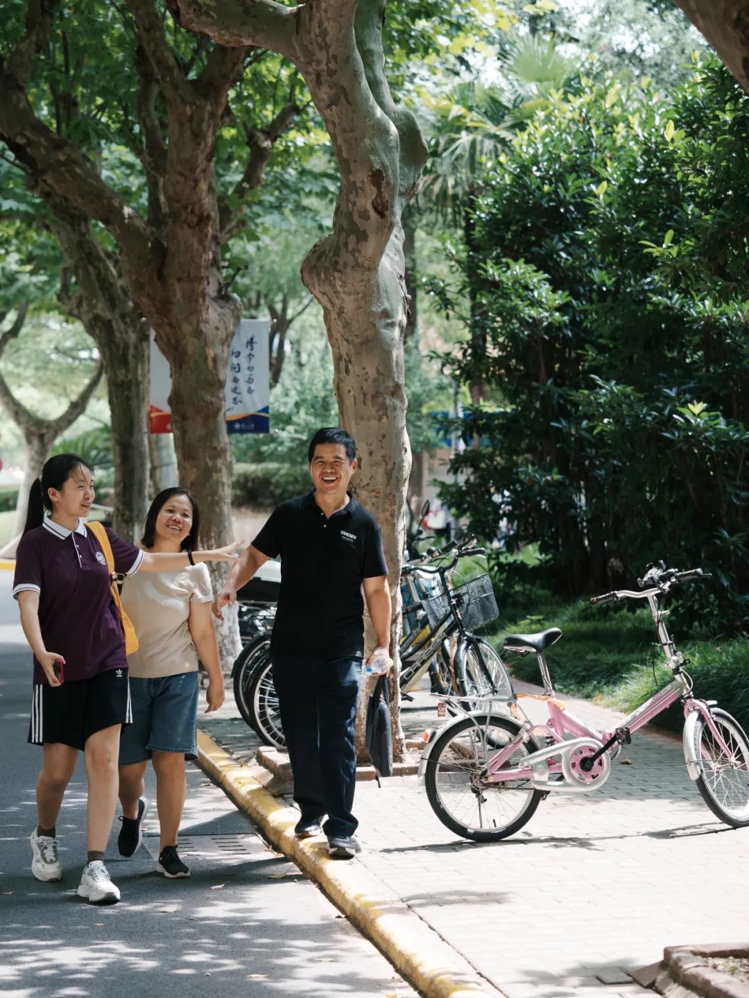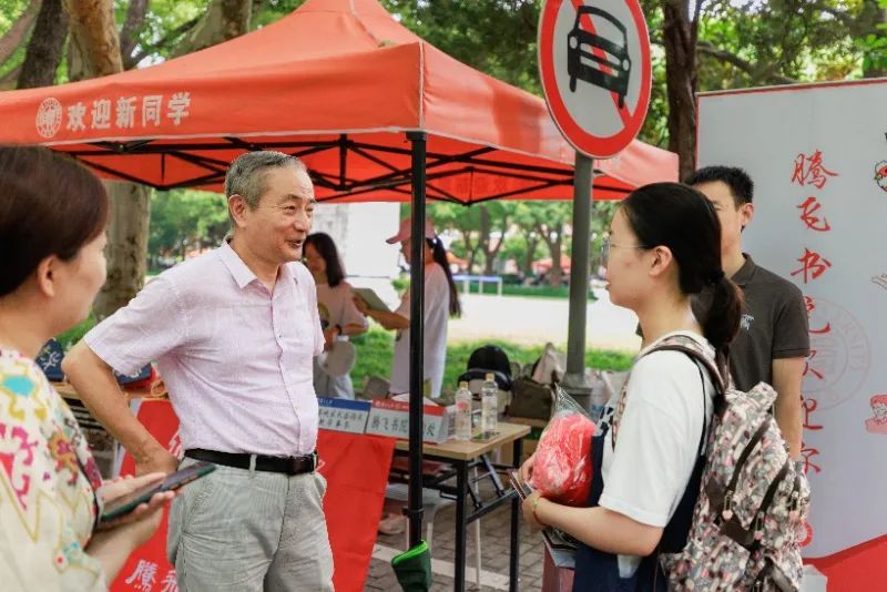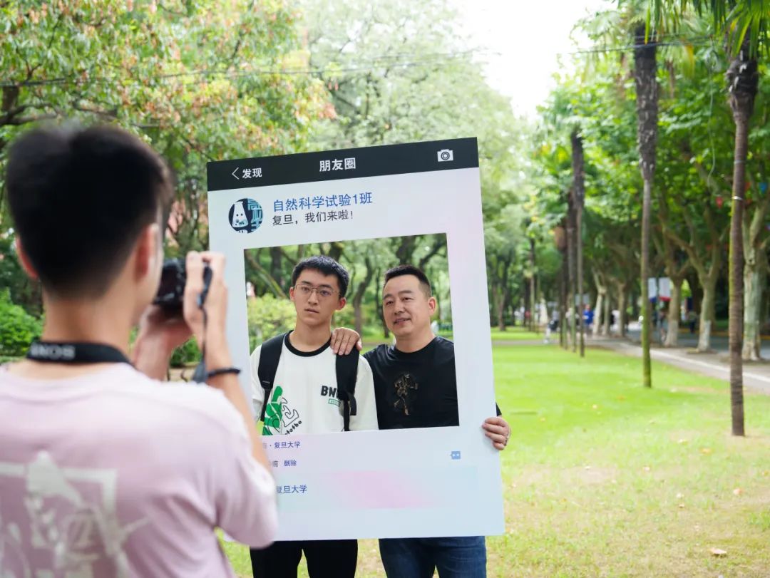 复旦园里,新生们与父母、家人结伴而行,完成报到流程,分享着入学第一天的喜悦。