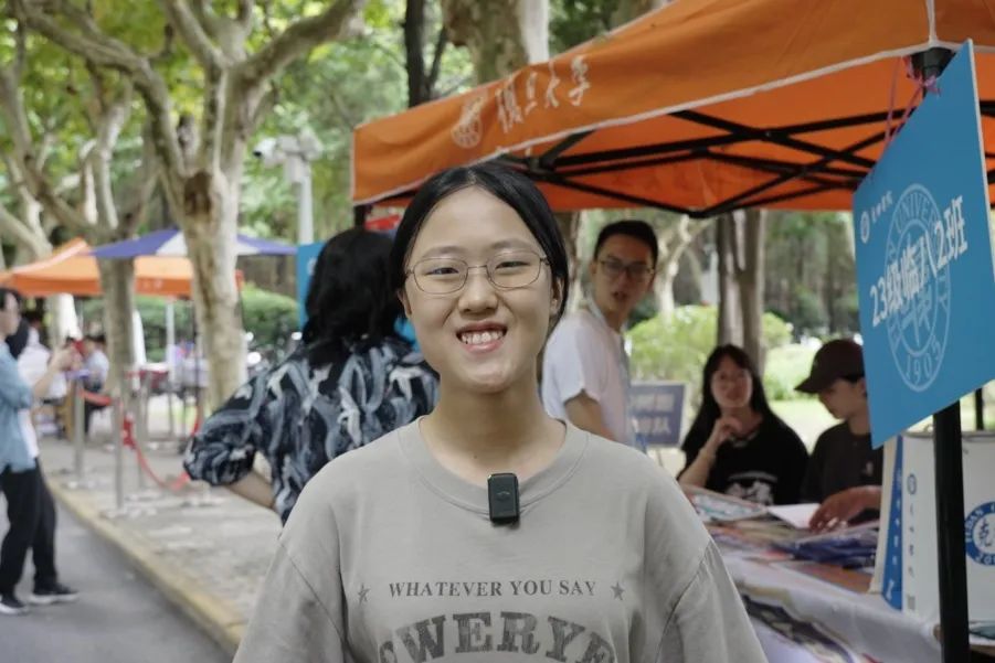在报到现场的她,被学长学姐以及辅导员的热情深深感染,她很青睐书院的文创产品,脸上写满初来乍到的新鲜感和兴奋感。圆梦复旦后,乐可悦期待在复旦学习到不同领域的前沿知识,培养自身快速学习的能力,发展自己的兴趣爱好。