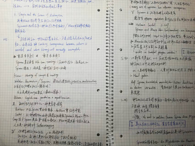进入博士阶段后课业负担逐渐减轻,拥有了更多自主时间,宋一帆尝试把自己的时间调节成与上班一致的节奏。他表示,这种作息让自己能够在特定的时间进入到工作状态,还可以在休息时间去陪伴自己的女朋友。对于自己不同于他人的“日出而作,日落而息”式不熬夜学习模式,他也坦言偶尔会感到不安,觉得自己学习的时间并不是太够:“可能跟性格有关吧,因为我有时候会写时间表,但是比较灵活,所以也不算完全地根据时间表做事,有点愧疚,但是这种愧疚就会成为我的动力。我总会觉得亏欠别人一些时间,亏欠了马克思一些时间、亏欠了黑格尔一些时间、亏欠了斯宾诺莎一些时间。”正是这种“愧疚”,鞭策着宋一帆更高效地利用自己的时间。
