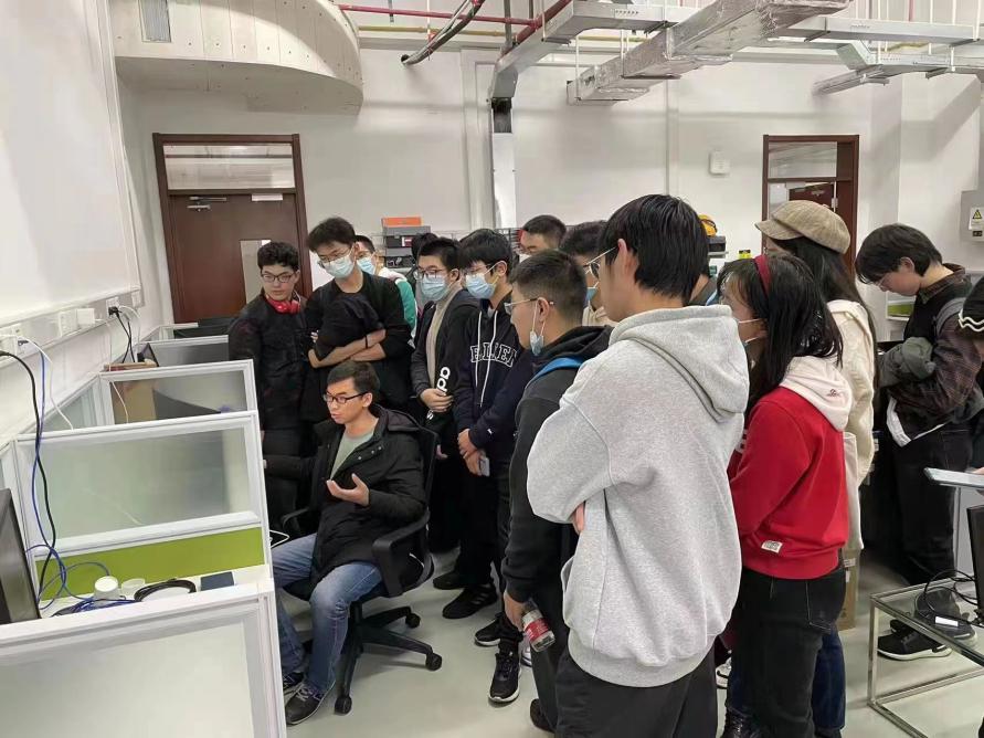 成庆荣在实验室为学弟学妹做介绍讲解