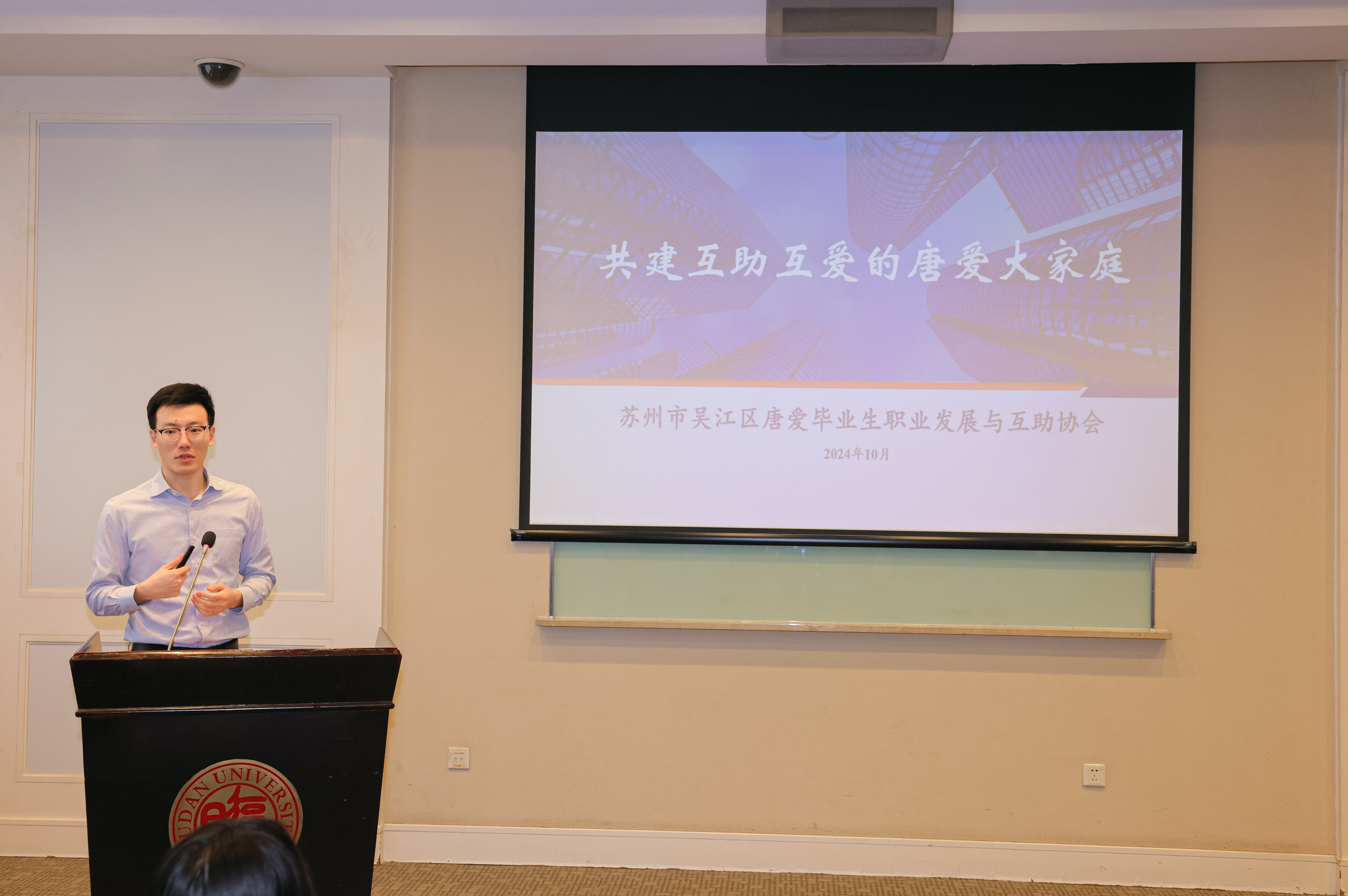张浩学长首先分享了他在校期间与复旦仁己社的故事,后又介绍了唐爱毕业生职业发展与互助协会的组织架构、活动体系等基本概况,并鼓励大家毕业之后加入到毕业生协会的大家庭之中。