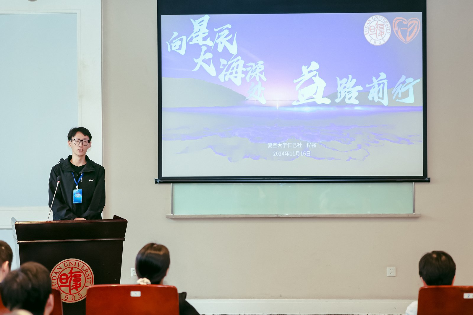 复旦大学仁己社学生代表翁仕遠讲述了她与仁己社相遇相知、共同成长的故事,并表达了对唐仲英先生及唐仲英基金会、爱心社指导老师的感谢。