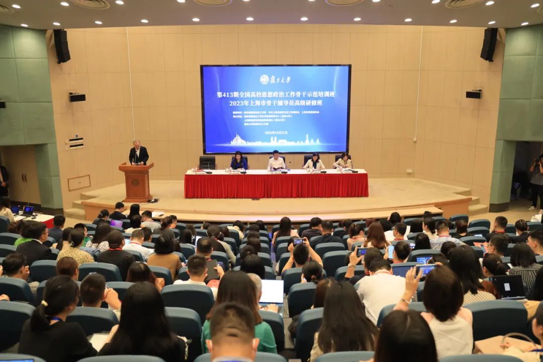 为深入学习贯彻习近平新时代中国特色社会主义思想和党的二十大精神,深入实施“时代新人铸魂工程”,切实提升高校辅导员的政治能力、专业素养、实战能力和研究能力,进一步推动高校学生思想政治工作高质量发展,在教育部思想政治工作司和上海市教卫工作党委、市教委的指导下,高校思想政治工作队伍培训研修中心(复旦大学)、上海高校辅导员培训研修基地(复旦大学)、复旦大学党委学生工作部举办第413期全国高校思想政治工作骨干示范培训班和2023年上海市骨干辅导员高级研修班。
