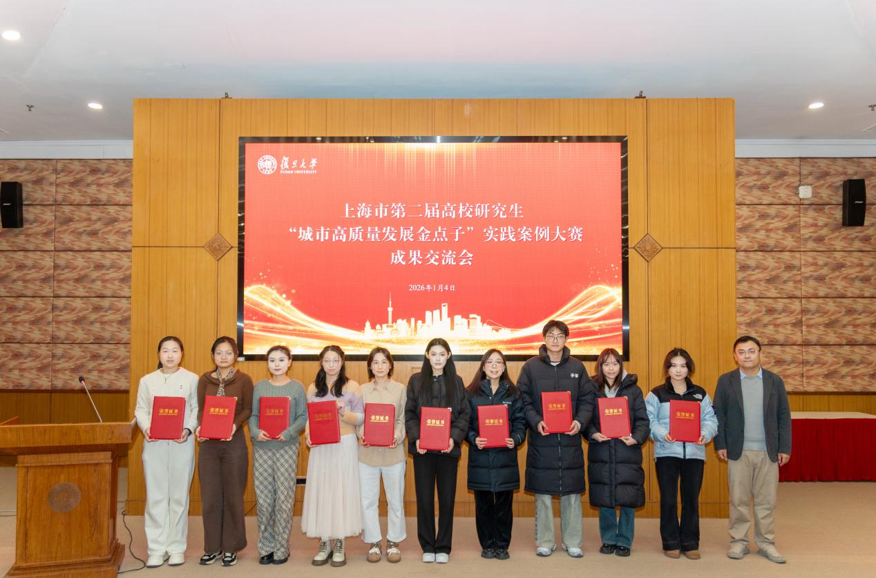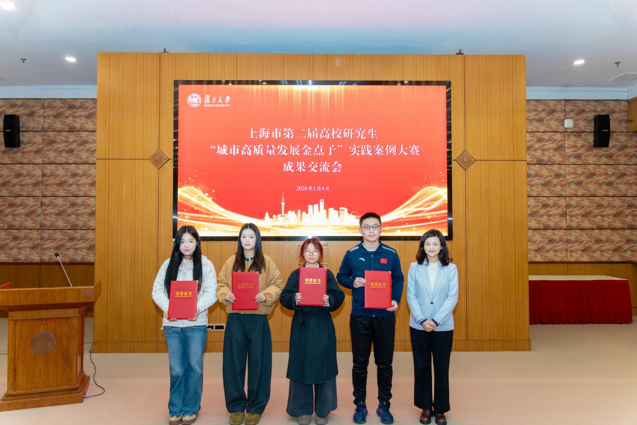 2026年1月4日,上海市第二届高校研究生“城市高质量发展金点子”实践案例大赛成果交流会在复旦大学举行。上海市信访办副主任祁克萍出席并讲话,复旦大学党委副书记钱海红致辞,市信访办人民建议征集处处长钱辰一、复旦大学社会发展与公共政策学院党委书记胡安宁,以及各参赛高校师生代表参加成果交流会。交流会由复旦大学党委学生工作部(处)部长陈洁主持。