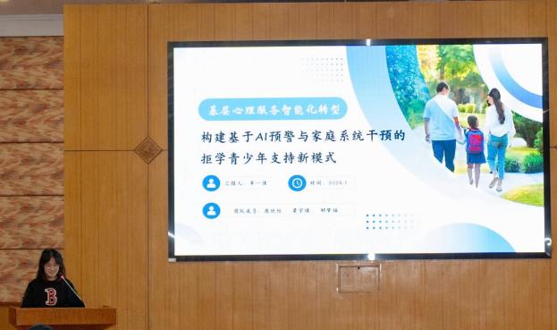 在成果展示环节,来自复旦大学、上海交通大学、上海师范大学和上海大学的四个优秀项目代表分享了他们的调研与实践成果:复旦大学《“延吉微光”数智助老》项目聚焦老年数字素养提升,探索基层治理数智化转型路径;上海交通大学《记忆织网·空间共生》项目运用空间记忆图谱助力遗产社区保护与更新;上海师范大学《基层心理服务智能化转型》项目构建AI预警与家庭干预模式,支持拒学青少年心理帮扶;上海大学《党建红引领生态绿》项目以“无废细胞”建设为切入点,探索超大城市低碳治理新实践。