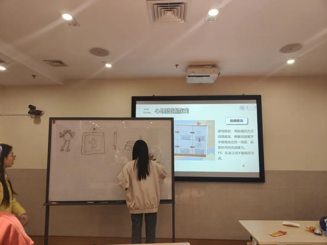 接下来是喊数成团的热身活动,在不断的笑声中,同学们快速融入了团队的氛围。在交头接耳和绘画接龙的环节中,大家相互倾听、相互理解,每一次的眼神交流、微笑,都让他们更加紧密地联系在一起,每一个动作都传递着团结与合作的力量。
