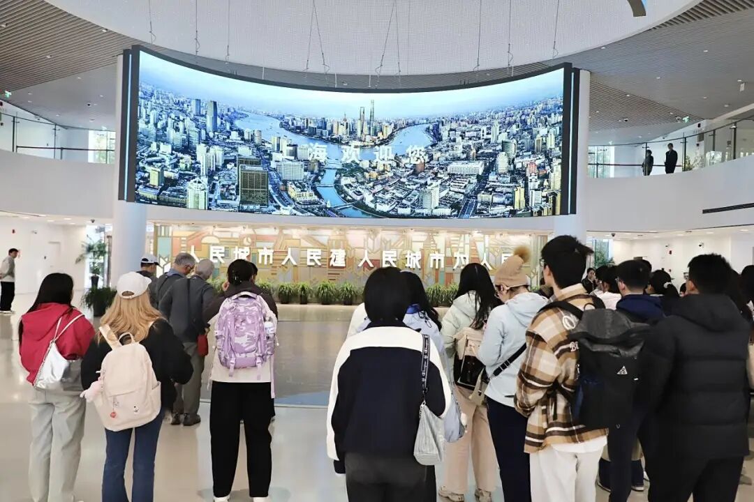 走进上海城市规划展示馆大厅,巨大的弧形环幕徐徐展开,一幅幅上海城市景观也铺陈开来。从蜿蜒的“一江一河”,到触手可及的“15分钟社区生活圈”,展厅里“人民城市人民建,人民城市为人民”的标语逐渐在经济学院25级的新生们眼前变得鲜活。
