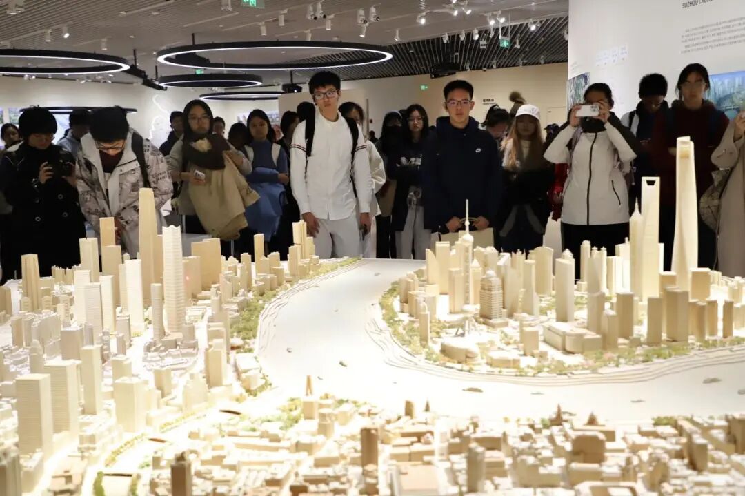 跟随讲解员的步伐,同学们走过“人文之城”“创新之城”“生态之城”三大展区,触碰上海的城市肌理。当看到上海工业技术开发区规划图时,25级经济学院的吴正阳举起了手机拍照记录,“我直观感受到,上海有科学和成熟的城市规划,正是这些规划让上海发展得更好。”