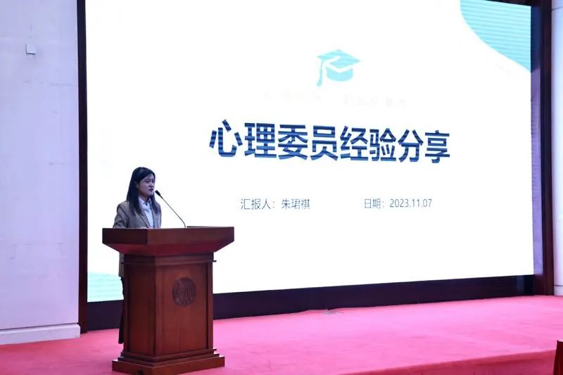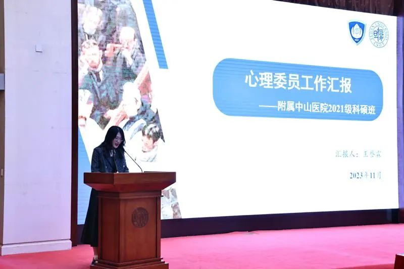 护理学院本科生朱珺祺同学以及中山医院研究生王誉霖同学作为年度优秀心理委员代表发言,分享了自己作为心理委员在过去一年中开展的工作。两位同学分享了实际工作中的经验和体会,表达了对心理委员工作的热爱以及对未来的期待。