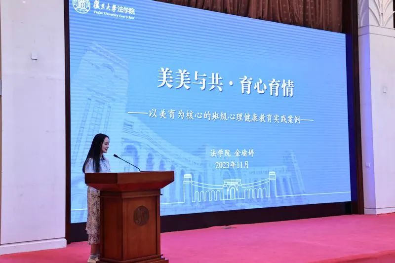来自法学院的金瑜婷老师作为获奖代表进行发言,介绍了法学院的优秀育人经验,用心育结合美育,围绕着“活动创造美”、“生活记录美”、“实践传递美”主题所开展系列特色活动,并表示未来将不断提升自我、规范工作,保障更多同学的心理健康。