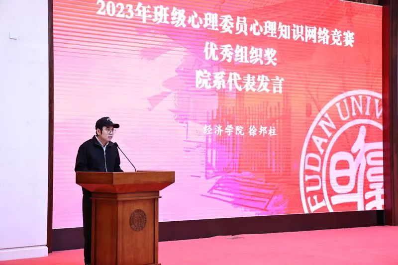 经济学院徐邦柱老师作为班级心理委员心理知识网络竞赛优秀组织奖获奖院系代表发言,分享了经济学院在心理健康教育工作中的有效成果和具体举措。