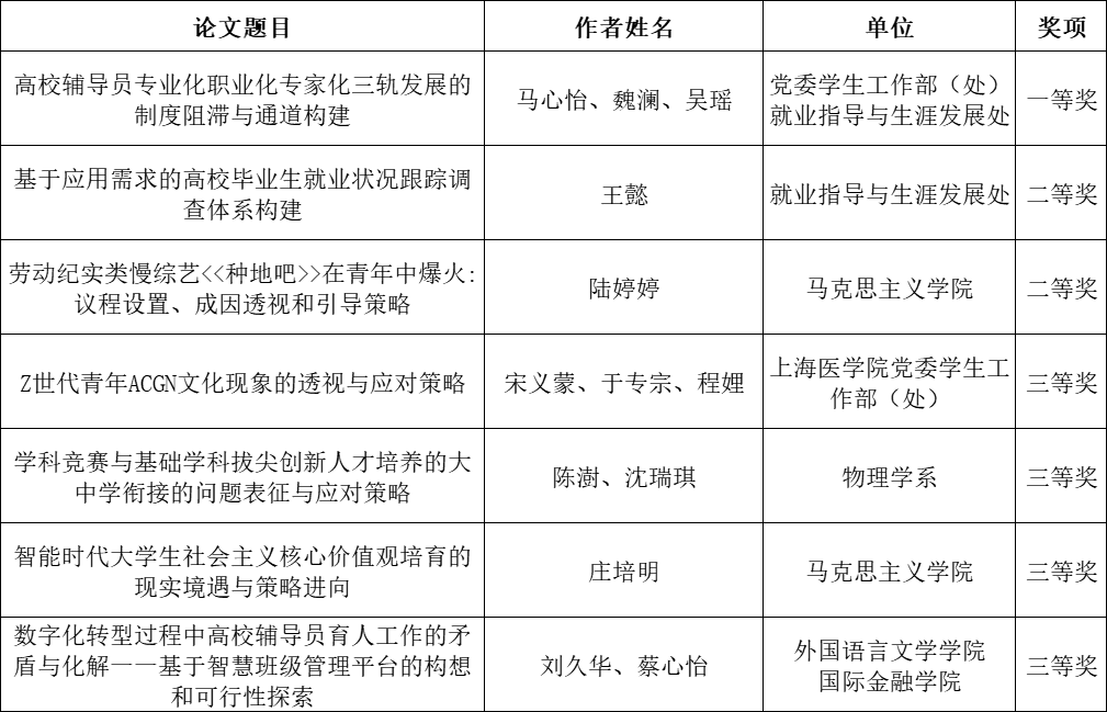 【第二十二届(2025年)上海高校辅导员征文活动获奖名单】