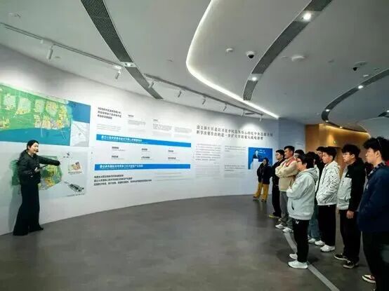 下午,老师和同学们共同来到了被誉为“上海临港会客厅”的滴水云厅规划展示中心。在“湖中云,云中城”的浪漫建筑意境中,跟随着讲解员的细致引导,同学们全面了解了上海临港新片区的发展历史、建设理念以及已取得的成绩。