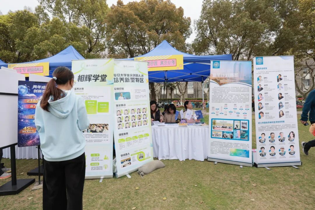展示之后,还有后续,票选出的优秀课题将有机会登上相辉堂北堂进行集中汇报。学校还会给每位学生提供一份“发展计划包”,涵盖复芏计划、创新创业大赛、挑战杯、职业规划大赛……想继续做科研的、想创业的、想深造的,都能找到下一步的方向。